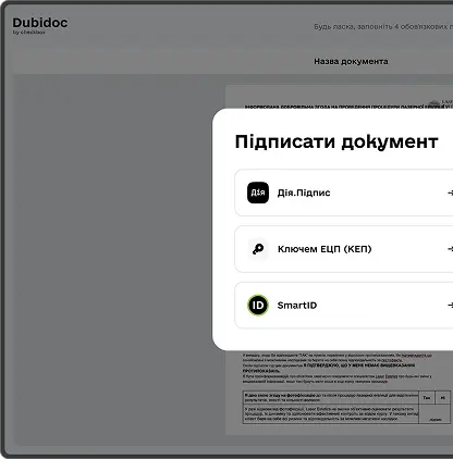 Dubidoc — перший в Україні безкоштовний сервіс для онлайн-підпису документів через Дія, КЕП або SmartID.