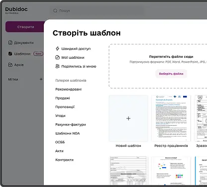 Збережіть стандартні договори, акти чи заявки як шаблони, щоб заповнювати їх за кілька кліків замість створення з нуля