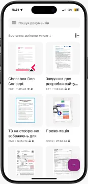 - Завантаження документів у різних форматах (PDF, Word, Excel, JPEG, PNG).