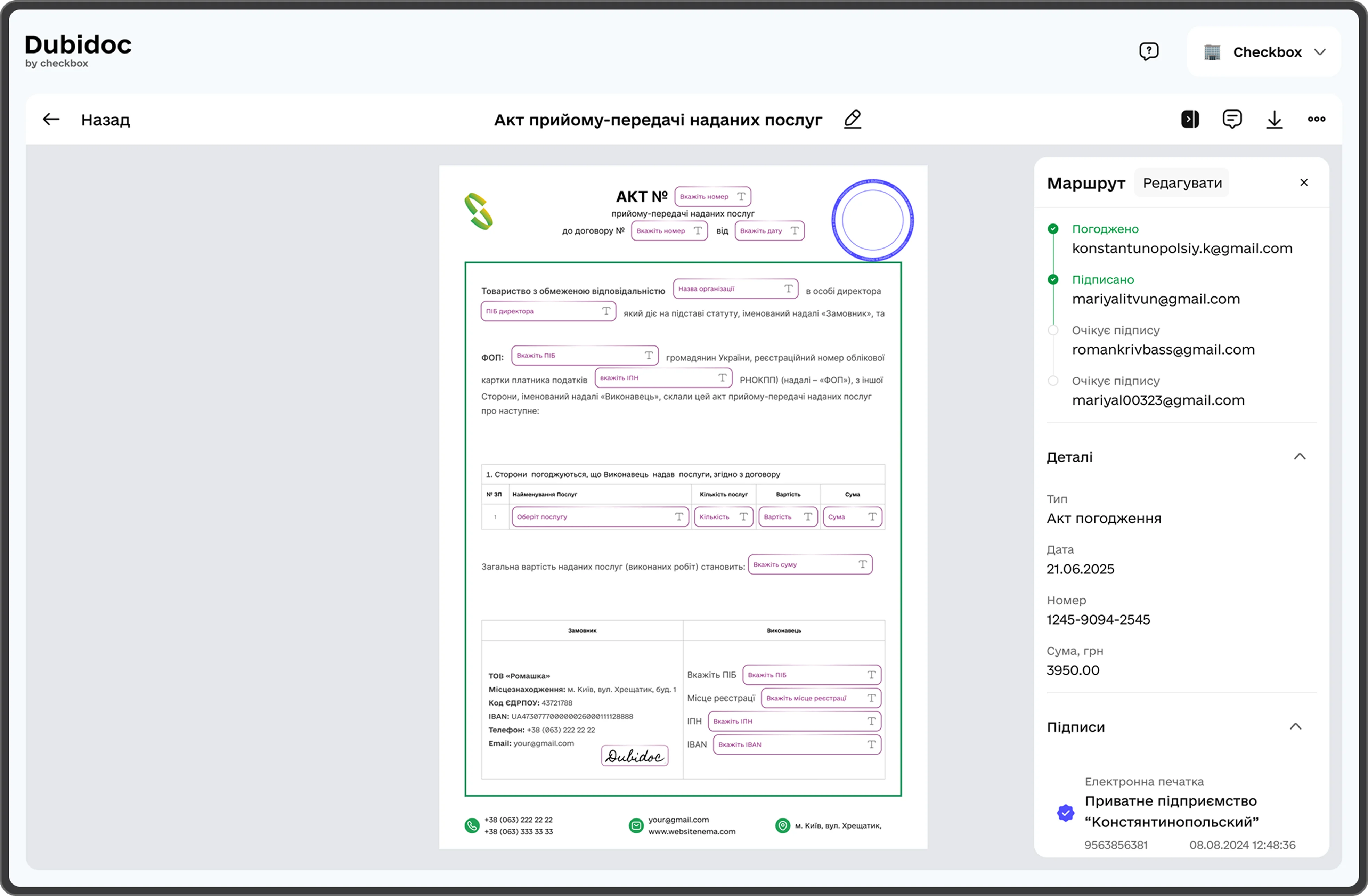 Звертайтеся до служби технічної підтримки Dubidoc через чат або електронну пошту